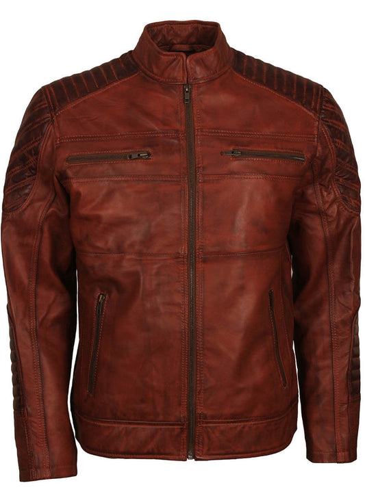 Maroon Cafe Racer Men's Biker Leather Jacket