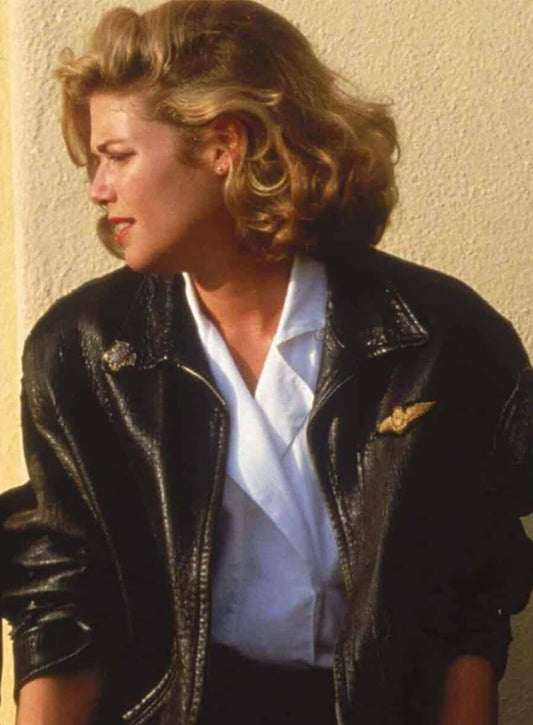 Kelly Mcgillis Top Gun Black Leather Jacket